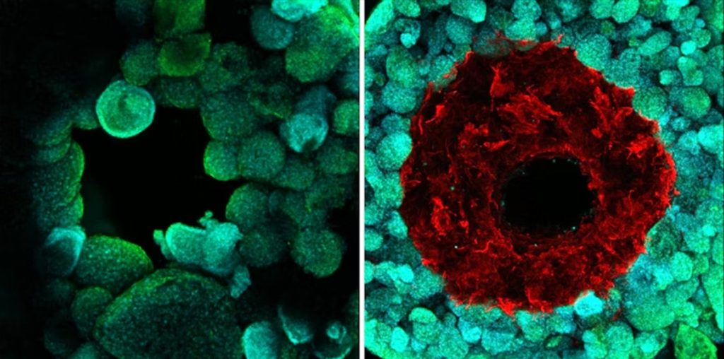 “In prior work, we developed a new 3D bioprinting method, known as ‘sacrificial writing in functional tissue’ (SWIFT), for patterning hollow channels within a living cellular matrix,” explains Paul Stankey, the study’s first author and a graduate student at SEAS. “Here, building on this method, we introduce coaxial SWIFT (co-SWIFT) that recapitulates the multilayer architecture found in native blood vessels, making it easier to form an interconnected endothelium and more robust to withstand the internal pressure of blood flow [2].”