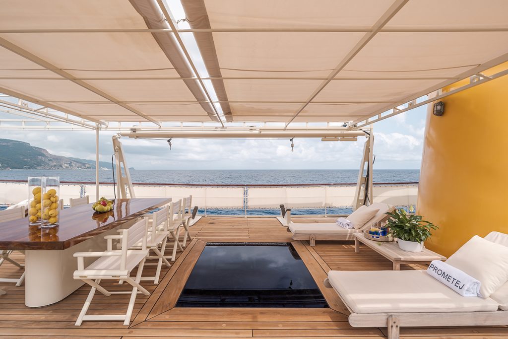 Central to life on board is the daily application of these strategies. A full suite of equipment – including a Technogym fitness area, IHHT machine for altitude simulation, red-light therapy devices and steam bath and sauna facilities – is made available to both guests and crew. Meals are devised and prepared by longevity chef Merlin Dettwiler, who creates dishes based on each participant’s health profile.