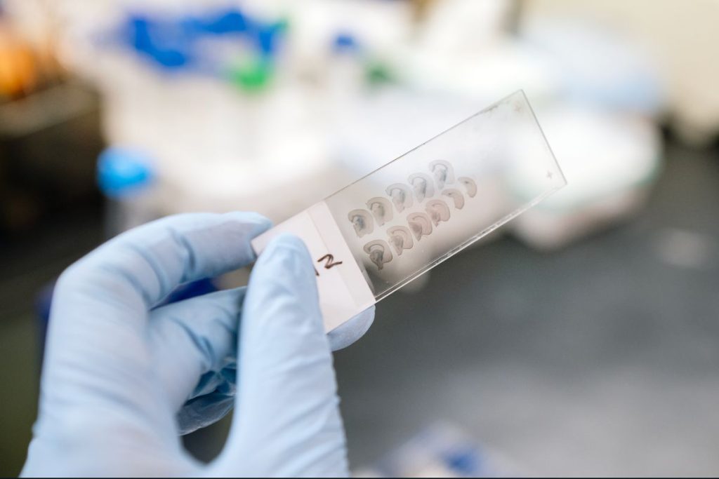 The study identified FDA-approved cancer drugs that reverse the gene expression signatures associated with Alzheimer’s. (Credit: Michael Short/Gladstone Institutes)
