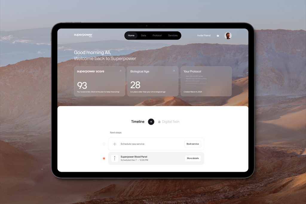 While standard blood panels often measure fewer than 20 biomarkers, Superpower tests for more than 100, spanning areas like cardiovascular health, hormone balance, metabolism, inflammation, and biological aging. Results are translated into personalized health scores and tailored action plans, with members receiving a custom longevity protocol along with access to an AI chat tool to allow them to “dig deeper” into their data.